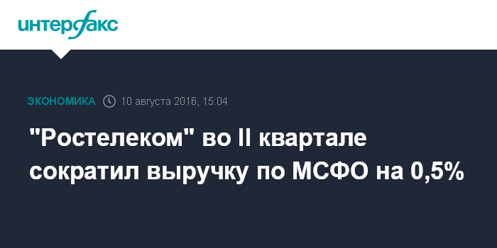Москва. 10 августа. INTERFAX.RU - Выручка ПАО "Ростелеком" по МСФО во II квартале 2016 года составила 71,8 млрд рублей, что на 0,5% ниже показателя аналогичного периода 2015 года (72,1 млрд рублей), говорится в сообщении компании.