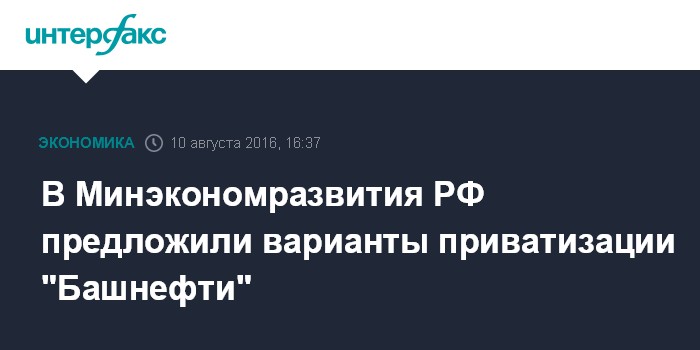 Москва. 10 августа. INTERFAX.RU - Минэкономразвития в среду внесло в правительство РФ проработанный отчет о способах приватизации государственной доли "Башнефти".