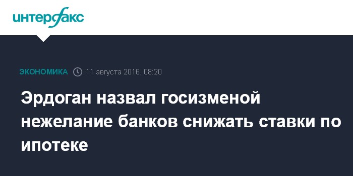 Москва. 11 августа. INTERFAX.RU - Президент Турции Реджеп Тайип Эрдоган заявил, что будет рассматривать противодействие его призывам к уменьшению ставок по ипотечным кредитам как государственную измену.