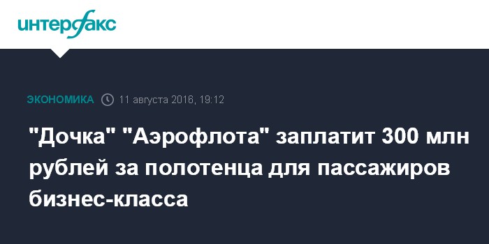 "Дочка" "Аэрофлота" заплатит 300 млн рублей за полотенца для пассажиров бизнес-класса