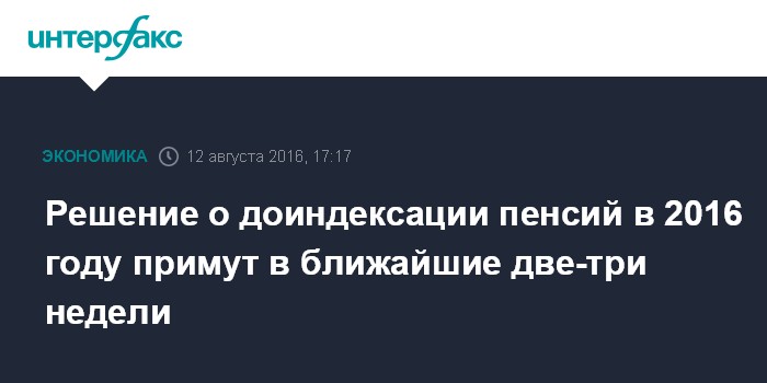 Решение о доиндексации пенсий в 2016 году примут в ближайшие две-три недели