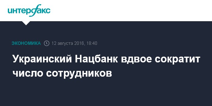 Москва. 12 августа. INTERFAX.RU - Национальный банк Украины (НБУ) объявил об очередном этапе внутренней трансформации, который предусматривает, среди прочего, сокращение персонала центрального банка вдвое, сообщил НБУ на официальном веб-сайте.