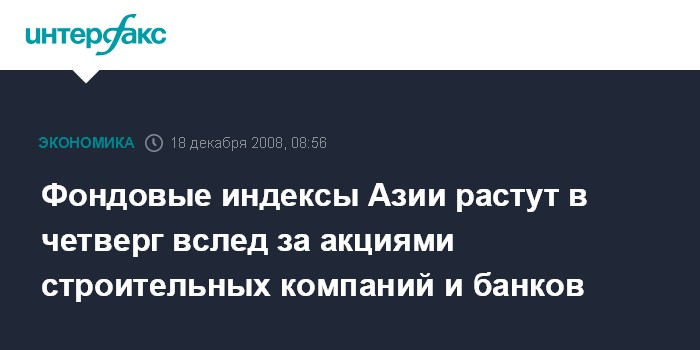 Фондовые индексы Азии растут в четверг вслед за акциями строительных компаний и банков