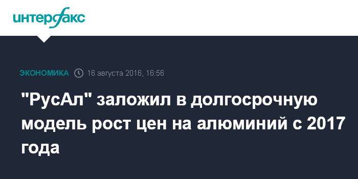 "РусАл" заложил в долгосрочную модель рост цен на алюминий с 2017 года