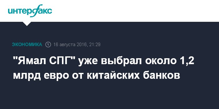 Таким образом, "Ямал СПГ" выбрал порядка 1,2 млрд евро китайских средств.