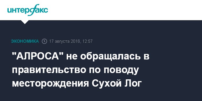 "АЛРОСА" не обращалась в правительство по поводу месторождения Сухой Лог