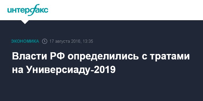 Москва. 17 августа. INTERFAX.RU - Правительство РФ утвердило расходы федерального бюджета на подготовку к XIX зимней Универсиаде в Красноярске на период с 2017 по 2019 годы, сообщается на сайте органов власти Красноярского края. Общие затраты федерального бюджета на подготовку к Универсиаде в Красноярске оцениваются в 31,5 млрд рублей.