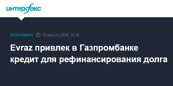 Москва. 18 августа. INTERFAX.RU - Evraz привлек в Газпромбанке 18 млрд рублей и 180 млн евро для рефинансирования существующей кредитной линии, сообщила меткомпания.