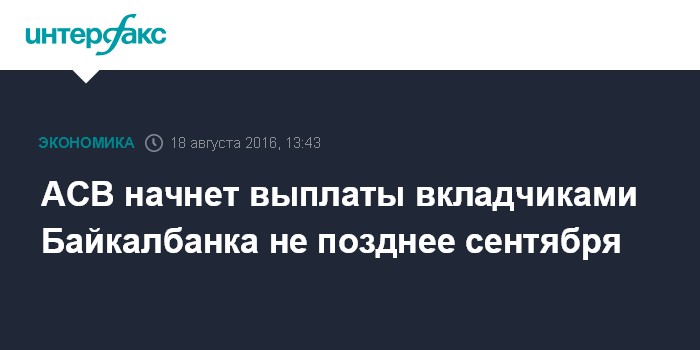 АСВ начнет выплаты вкладчиками Байкалбанка не позднее сентября
