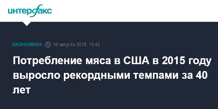 Москва. 18 августа. INTERFAX.RU - Потребление мяса в расчете на душу населения в США в 2015 году выросло на пять процентов, рекордными темпами за 40 лет, пишет MarketWatch со ссылкой на исследование Rabobank.