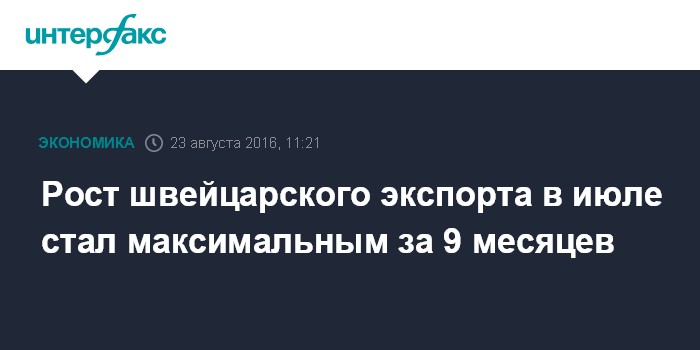 Рост швейцарского экспорта в июле стал максимальным за 9 месяцев