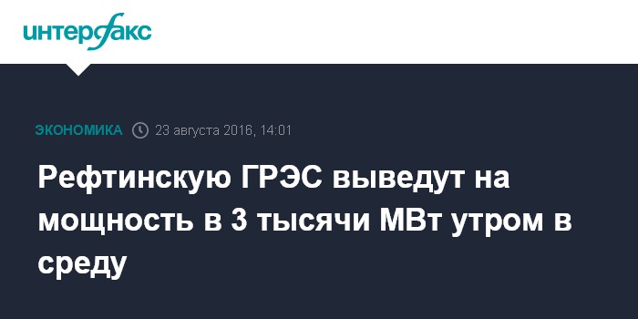Москва. 23 августа. INTERFAX.RU - Рефтинская ГРЭС, на которой произошло аварийное отключение в результате ЧС в понедельник, планирует выйти на мощность в 3 тыс. МВт к утру в среду, сообщает пресс-служба правительства Свердловской области.