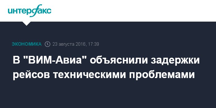 Во вторник пассажиры авиакомпании сообщили о многочасовых задержках рейсов "ВИМ-Авиа" из Симферополя и Сочи в Москву. По их словам, на чартерах с 22 августа происходил "какой-то коллапс". Согласно информации онлайн-табло прилетов московского аэропорта "Домодедово" на 11:00 вторника "ВИМ-Авиа" задерживала четыре рейса из Симферополя, рейс из Сочи и Геленджика, кроме того, с полуторачасовым опозданием прилетел в Москву рейс из Новосибирска.