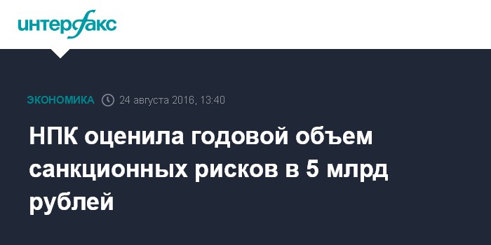 НПК оценила годовой объем санкционных рисков в 5 млрд рублей