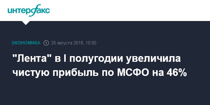 Москва. 25 августа. INTERFAX.RU - Чистая прибыль ритейлера "Лента" по МСФО в первом полугодии 2016 года увеличилась на 45,9% по сравнению с прошлогодним показателем, до 4,326 млрд рублей.
