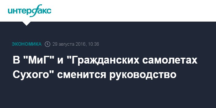 Москва. 29 августа. INTERFAX.RU - На двух предприятиях "Объединенной авиастроительной корпорации" (ОАК) - РСК "МиГ" и АО "Гражданские самолеты Сухого" (ГСС) - в ближайшее время сменится руководство, сообщает газета "Коммерсантъ" в понедельник.