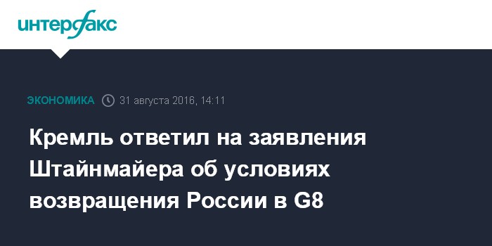 Подобные заявления Штайнмайер делает не впервые: в апреле он также говорил, что предпочел бы вновь видеть Россию в составе G8. Тогда министр подчеркивал, что в 2016 году условий для возвращения формата G8 нет.