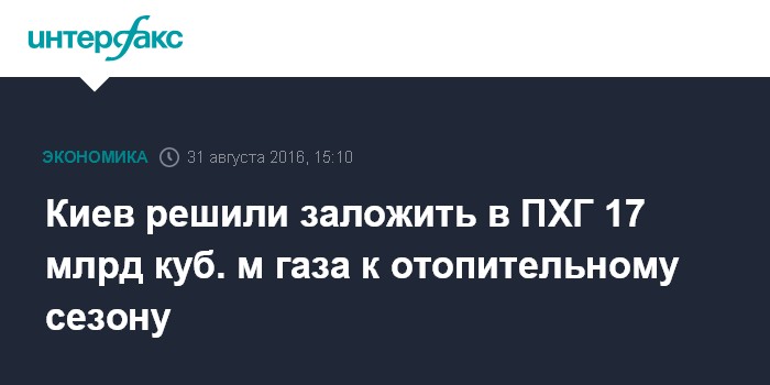 Москва. 31 августа. INTERFAX.RU - Кабинет министров Украины решил сформировать запас в объеме 17 млрд куб. м газа в подземных хранилищах газа (ПХГ) к началу отопительного сезона, сообщил первый вице-премьер Степан Кубив на брифинге в Киеве в среду.