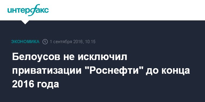 Москва. 1 сентября. INTERFAX.RU - С приватизацией госпакета "Роснефти" можно успеть в этом году, считает помощник президента РФ Андрей Белоусов.