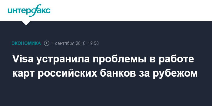 Москва. 1 сентября. INTERFAX.RU - Карты Visa, выпущенные российскими банками, работают в обычном режиме, говорится в сообщении пресс-службы платежной системы.