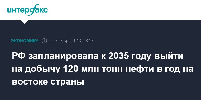 РФ запланировала к 2035 году выйти на добычу 120 млн тонн нефти в год на востоке страны