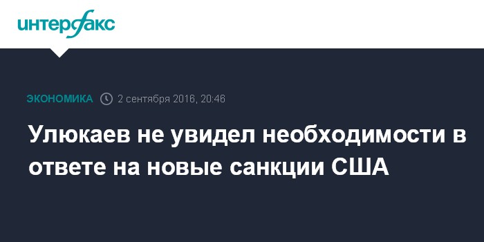 Москва. 2 сентября. INTERFAX.RU - Новые санкции США - "неприятное событие", могут несколько усложнить деятельность для некоторых компаний, попавших в список, но макроэкономического эффекта для экономики РФ не несут, Россия вряд ли будет принимать какие-то ответные меры, заявил глава Минэкономразвития Алексей Улюкаев в интервью телеканалу "РБК ТВ" на полях Восточного экономического форума.