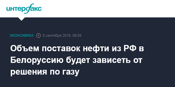 Объем поставок нефти из РФ в Белоруссию будет зависеть от решения по газу