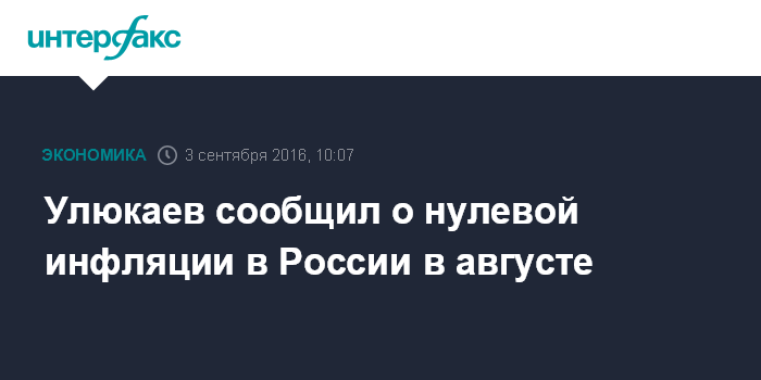 Москва. 3 сентября. INTERFAX.RU - Инфляция в России в августе была нулевой, в годовом выражении она снизилась до 6,8% с 7,2% в июле, сообщил оценку Минэкономразвития руководитель министерства Алексей Улюкаев журналистам в субботу в кулуарах Восточного экономического форума.