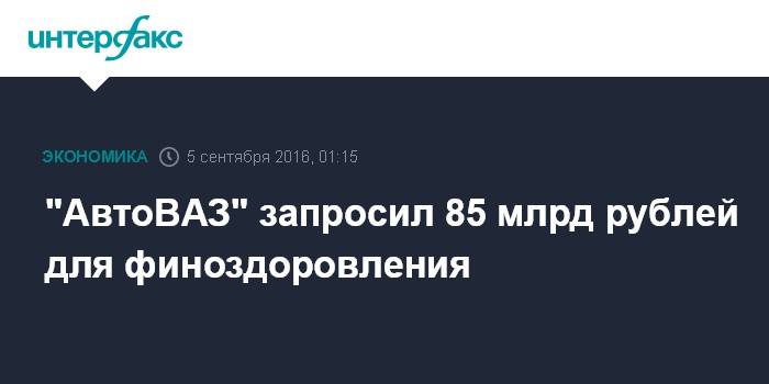 Как говорится в сообщении "АвтоВАЗа", в случае одобрения допэмиссии со стороны акционеров, допэмиссию планируется провести в декабре 2016 г. По ее итогам компания планирует привлечь 25 млрд руб. Всего же, как отмечается в сообщении, для финансового оздоровления "АвтоВАЗу" необходимо 85 млрд руб.