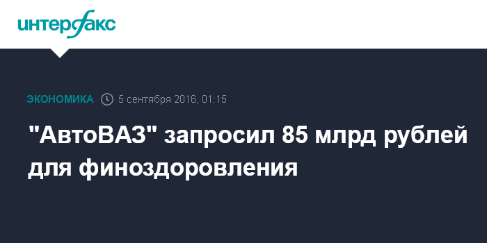 "АвтоВАЗ" запросил 85 млрд рублей для финоздоровления