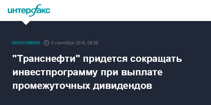 Москва. 5 сентября. INTERFAX.RU - АК "Транснефть" придется сократить инвестпрограмму в случае выплаты промежуточных дивидендов.