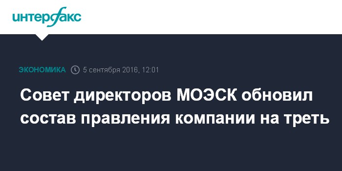 Москва. 5 сентября. INTERFAX.RU - Совет директоров ПАО "Московская объединенная электросетевая компания" (МОЭСК) избрал трех новых членов правления из десяти, сообщила компания.