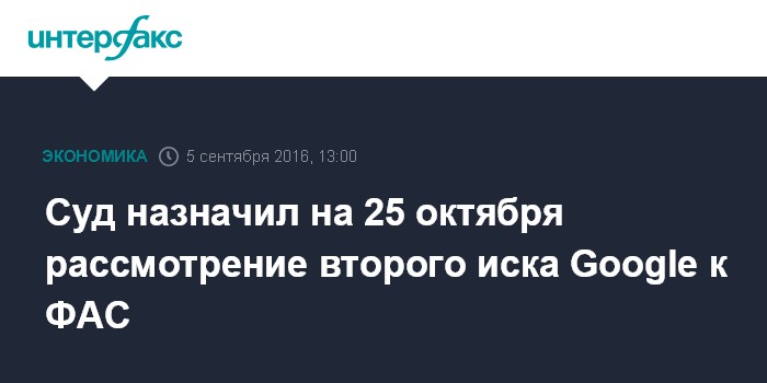 Суд назначил на 25 октября рассмотрение второго иска Google к ФАС