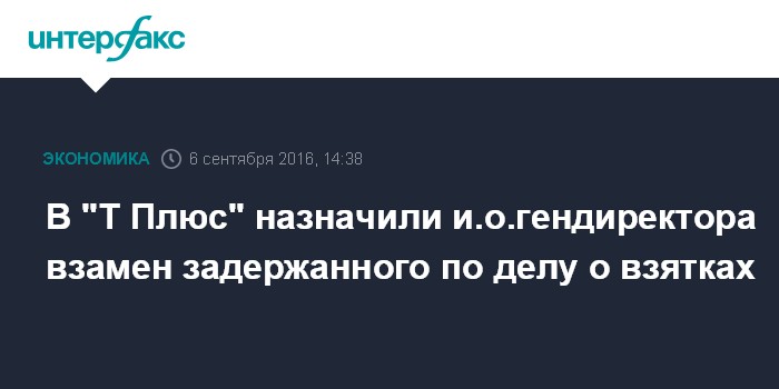 В "Т Плюс" назначили и.о.гендиректора взамен задержанного по делу о взятках