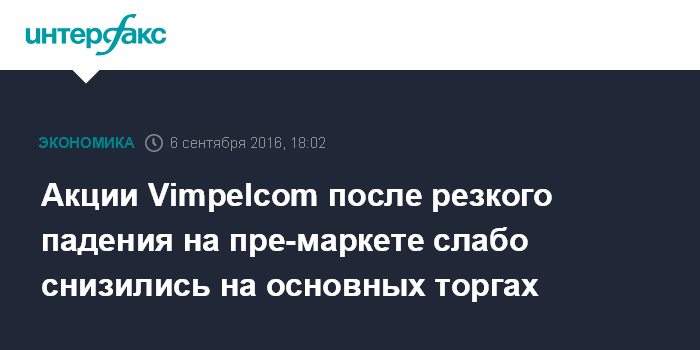 Акции Vimpelcom после резкого падения на пре-маркете слабо снизились на основных торгах