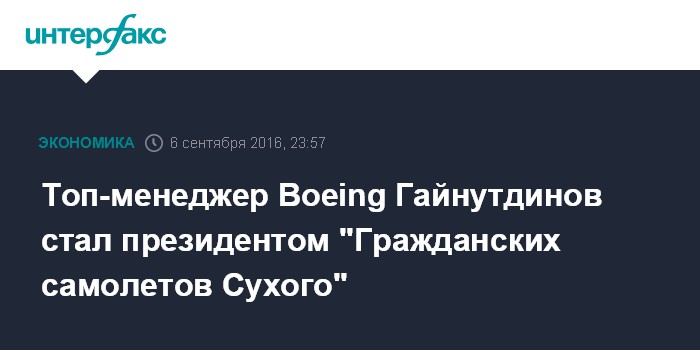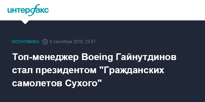 Топ-менеджер Boeing Гайнутдинов стал президентом "Гражданских самолетов Сухого"