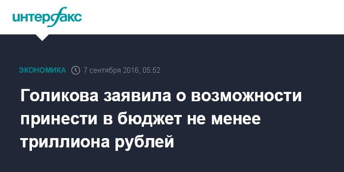 Голикова заявила о возможности принести в бюджет не менее триллиона рублей