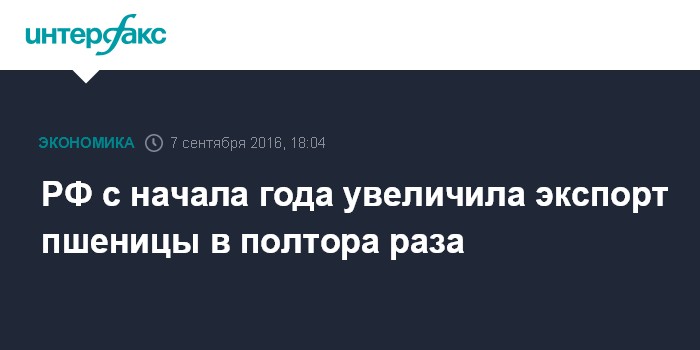 РФ с начала года увеличила экспорт пшеницы в полтора раза