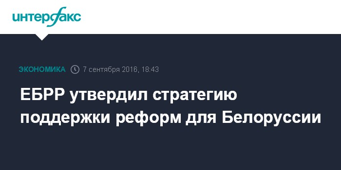 Москва. 7 сентября. INTERFAX.RU - Европейский банк реконструкции и развития принял новую четырехлетнюю стратегию для Белоруссии, в которой определены инвестиционные приоритеты банка в стране, говорится сообщении ЕБРР.