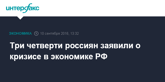 Москва. 10 сентября. INTERFAX.RU - Доля россиян, говорящих о наличии в стране экономического кризиса, снизилась за последние месяцы: так, сейчас о кризисе говорят 72% против 78-79% в марте-июне, сообщает фонд "Общественное мнение".