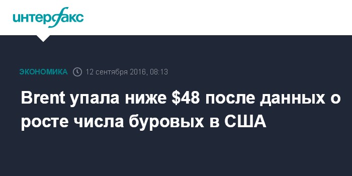 Brent упала ниже $48 после данных о росте числа буровых в США