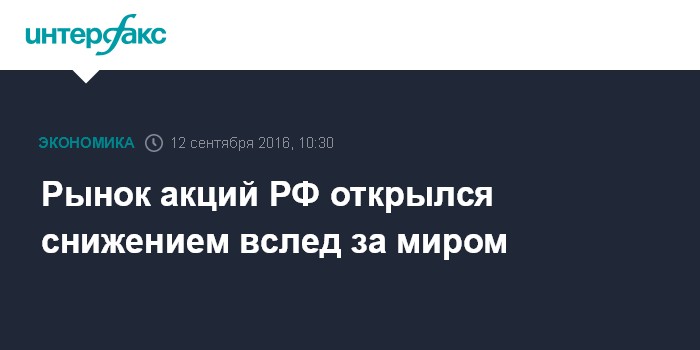 Москва. 12 сентября. INTERFAX.RU - Рынок акций РФ на открытии торгов в понедельник продолжил снижение вслед за мировыми площадками, испуганными опасениями скорого подъема ставок ФРС и избытком предложения нефти на мировом сырьевом рынке; индексы ММВБ и РТС за первую минуту торгов потеряли 0,8-1,1%.