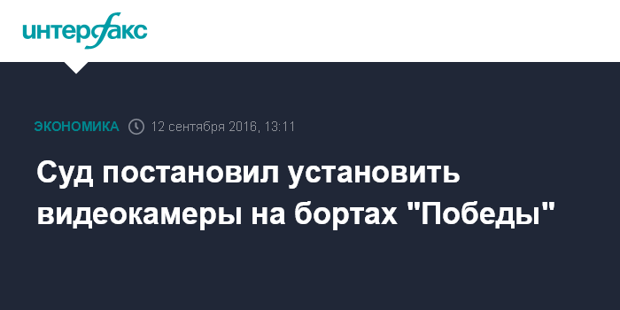 Москва. 12 сентября. INTERFAX.RU - Арбитражный суд Москвы признал законным предписание Федеральной службы по надзору в сфере транспорта (Ространснадзор) о необходимости установить видеокамеры на самолетах авиакомпании "Победа", сообщил корреспондент агентства "Интерфакс" из суда. Таким образом, суд отказал авиакомпании в иске.