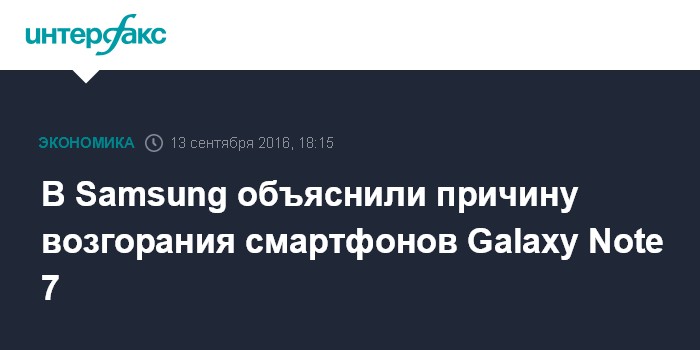 Москва. 13 сентября. INTERFAX.RU - Причиной, которая приводит к возгоранию смартфонов Galaxy Note 7, является небольшой производственный дефект батареи. Об этом сообщает Bloomberg со ссылкой на отчет Samsung, подготовленный для корейских регуляторов. На пластины в аккумуляторе оказывается давление, которое приводит к соприкосновению положительного и отрицательного полюсов, в результате чего происходит замыкание.