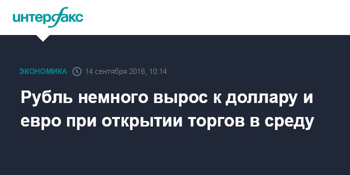 Москва. 14 сентября. INTERFAX.RU - Доллар и евро снизились на "Московской бирже" в первые минуты торгов в среду, рубль немного укрепился на фоне роста мировых цен нефти.