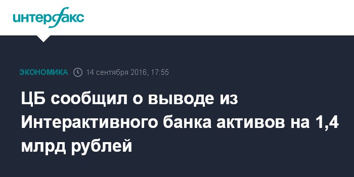 ЦБ сообщил о выводе из Интерактивного банка активов на 1,4 млрд рублей