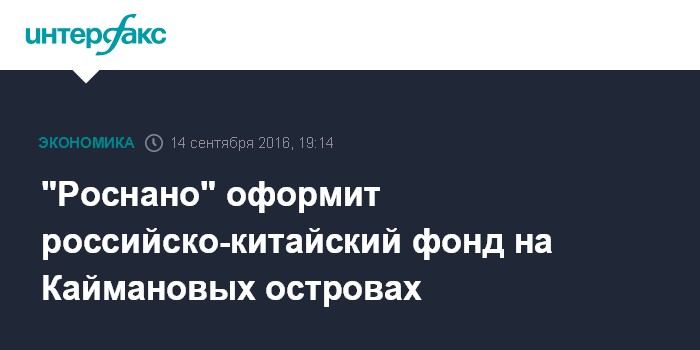 "Роснано" оформит российско-китайский фонд на Каймановых островах