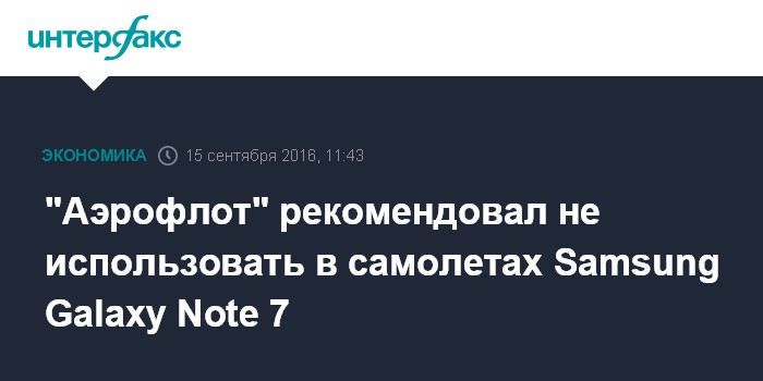 Москва. 15 сентября. INTERFAX.RU - "Аэрофлот" рекомендовал пассажирам не использовать в самолетах смартфоны Samsung Galaxy Note 7.