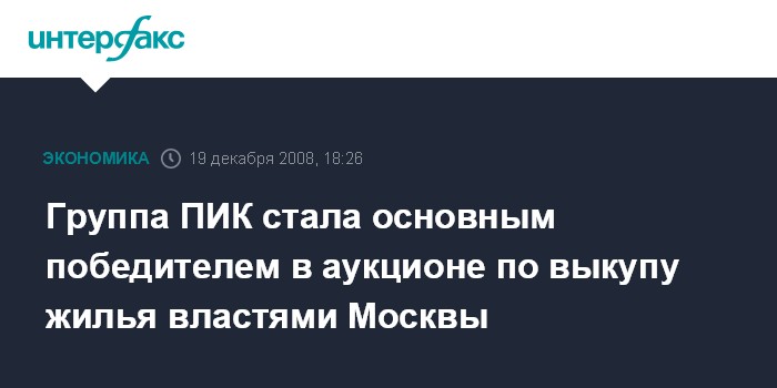 Москва. 19 декабря. INTERFAX.RU - Компания ПИК-Регион, входящая в группу компаний ПИК, одержала победу в аукционе по выкупу жилья московским правительством в пятницу.