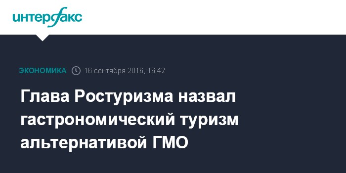 Москва. 16 сентября. INTERFAX.RU - Гастрономический туризм может и должен стать ярким способом знакомства с культурой и особенностями России для российских и зарубежных туристов, считает глава Ростуризма Олег Сафонов. По его словам, гастрономический туризм может также стать альтернативой активному зарубежному использованию ГМО.